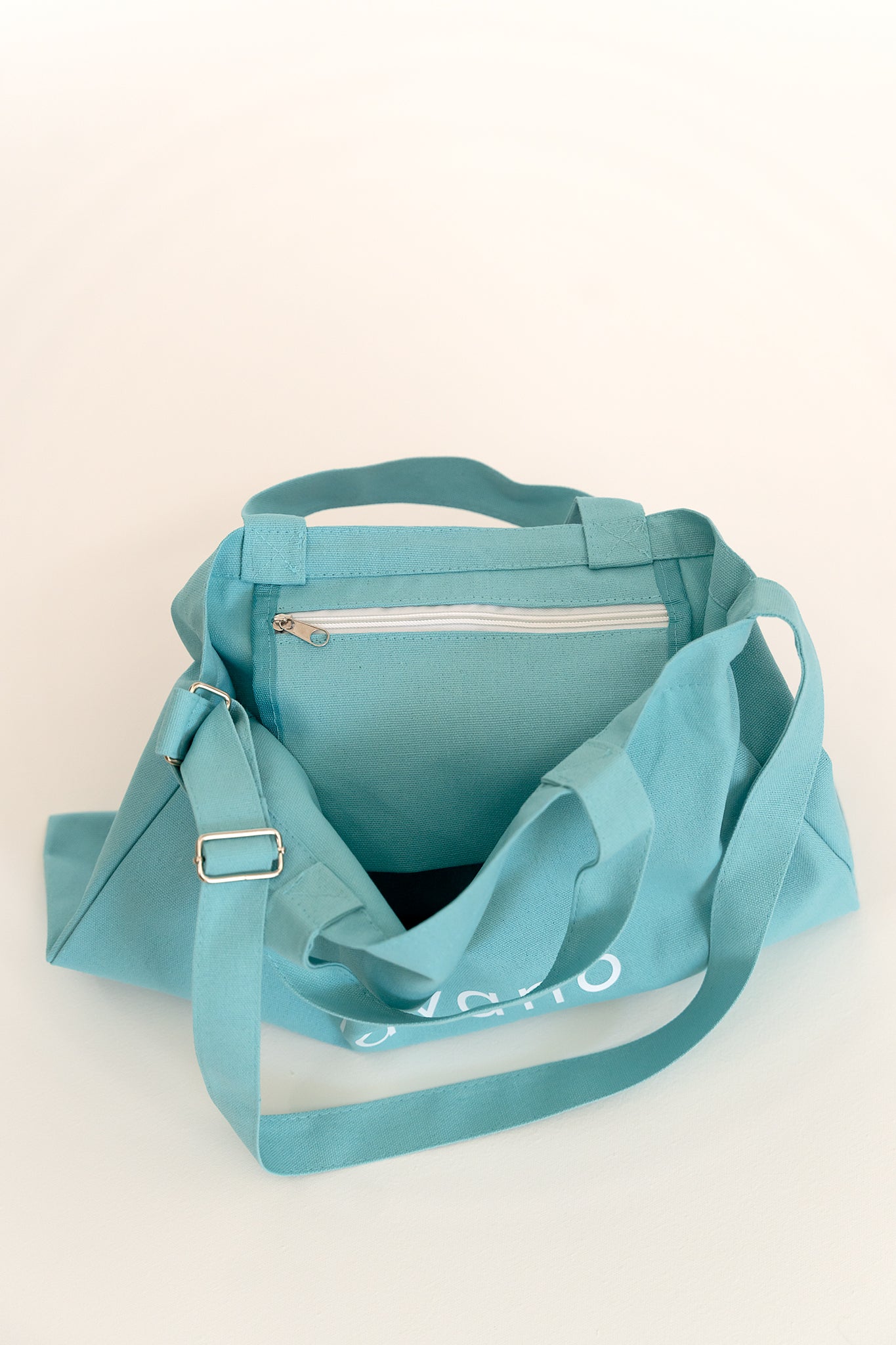 turquoise cotton tote bag – everyday carry with adjustable strap